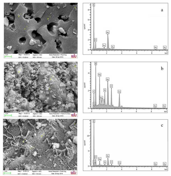 將炭化生物質與氯化鈉分別以1:0、1:1和1:2的比例混合,通過化學活化來制備活性炭,接著通過SEM-EDS和XRF分析來確定活性炭的形態(tài)(圖1),表明活性炭1:0具有多孔表面,但是在用氯化鈉活化后,檢測到高度光滑的織構;钚蕴康脑亟M成通過SEMEDS和XRF評估,選擇了三個典型點來檢查元素分析。顯然,活性炭1:0主要由碳(C)和氧(O)組成,其中C元素的含量為78.84wt%。至79.65wt%。O元素的含量為20.35wt%至21.16wt%。在活性炭上活化了不同的氯化鈉后,更換了元素。