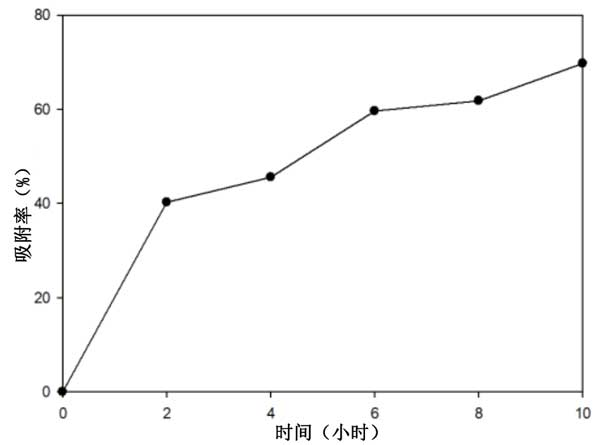接觸時間和吸附百分比之間的關系如圖2所示。在該實驗中,鋅離子溶液為65ppm,活性炭用量為0.5g,并在搖床中以220rpm的速度進行攪拌。接觸時間2-10小時,對鋅離子的吸附增加(40.26-70%)。
