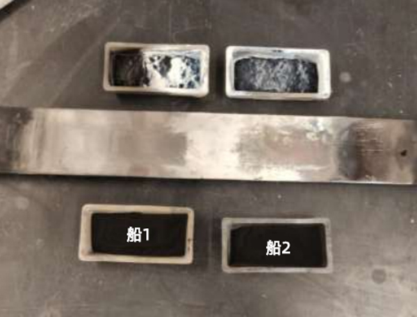 氣體從右向左流動,材料最常沉積在圖像中的船1上。這說明材料從船1運送到船2并與樣品表面的碳發(fā)生反應。一旦樣品表面被碳化硅擠滿,碳化硅就不能再與碳反應,而是將碳化硅吹出爐外。