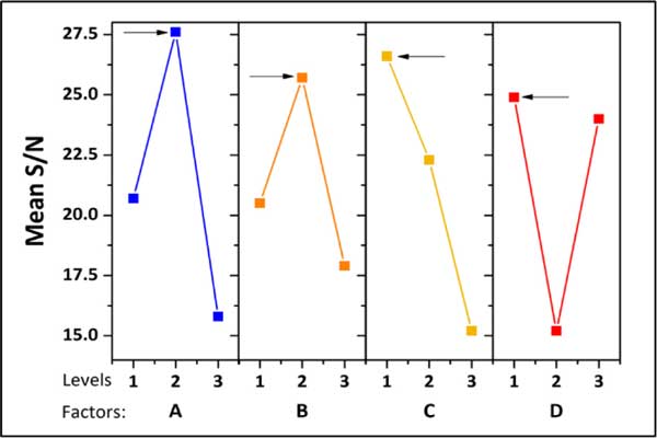 環(huán)己烷和苯在測試活性炭上的二元吸附,有相應(yīng)的穿透曲線;钚蕴縀4對二元混合物中的兩種碳氫化合物顯示出最高的吸附能力。盡管樣品E4的苯吸附容量較高,但其選擇性低于其他活性炭(E9>E5>E6>E3>E1>E8>E2>E4>E7)。所有活性炭都優(yōu)先吸附苯,但樣品E1、E4、E5和E8顯示出很高的苯吸附能力。填充床的小數(shù)容量比在單組分氣體吸附更大的二進制吸附。當使用低吸附物濃度時填充床的吸附效率增加。表明活性炭材料可以更容易、更有效地吸附傳質(zhì)區(qū)中的碳氫化合物。在二元混合物分離中,對活性炭苯吸附能力影響最大的因素是:活化劑、浸漬比和物理活化時間。吸附劑E1、E4、E5、E6和E8顯示出很好的信噪比。圖3說明了在測試條件下制備活性炭的平均S/N比。總體而言,制備具有高吸附能力的活性炭以從二元混合物中分離苯的合適條件已驗證。