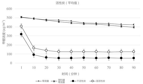 圖2:測試活性炭樣品時(shí)測得的甲醛濃度。