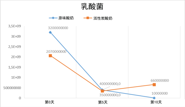 經(jīng)測(cè)定,在含有活性炭的酸奶和原味酸奶樣品的第0天、第5天和第10天,沒(méi)有菌群和總酵母霉菌(PDA)生長(zhǎng)。測(cè)定了總?cè)樗峋?圖3)。