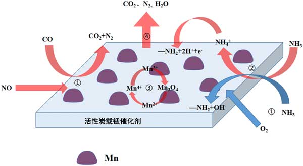 圖4:活性炭載錳催化劑低溫CO+NH3偶聯(lián)脫硝機理圖。
