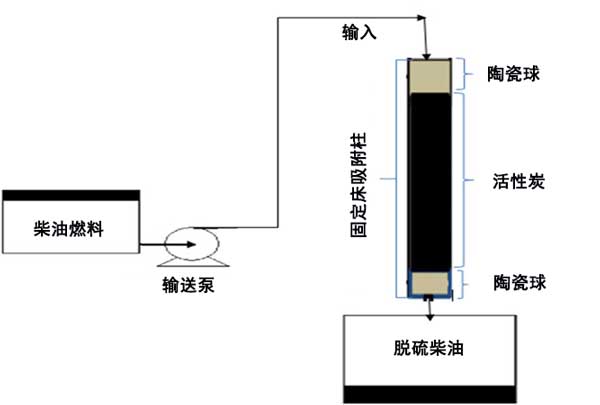 控制排放流量并且固定床吸附塔裝置中的流量保持恒定以達(dá)到穩(wěn)態(tài)條件。在接近穩(wěn)態(tài)條件時(shí)從固定床吸附塔裝置出口采集產(chǎn)品樣品并準(zhǔn)備用于硫含量分析。為了確認(rèn)脫硫?qū)嶒?yàn)結(jié)果的準(zhǔn)確性,每次運(yùn)行重復(fù)脫硫運(yùn)行兩次。運(yùn)行完成后關(guān)閉計(jì)量泵,并將所有打開的閥門設(shè)置為關(guān)閉。