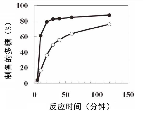 圖1:在活性炭存在(實(shí)心圓圈)或不存在(空心圓圈)的情況下從葡萄糖漿制備難消化的多糖。