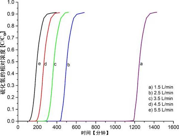 通過(guò)使用經(jīng)受不同操作參數(shù)的混合氣體測(cè)試活性炭性能,例如流速,所用長(zhǎng)度床,所用氣體類型和活性炭。為了確定吸附容量,穿透點(diǎn)和飽和點(diǎn)分別表示硫化氫濃度何時(shí)在出口流處達(dá)到1ppm和1000ppm。此外,數(shù)據(jù)表示為重復(fù)三次的平均結(jié)果。