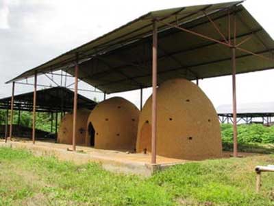 在這個過程中,活性炭前植物材料被切成均勻尺寸堆在窯中水平堆放(圖1)。然后用磚塊封閉門,并在外面抹上泥漿,以便更好地隔熱并防止泄漏。通過在水平和垂直方向上調(diào)節(jié)開口將溫度保持在400-500℃來實(shí)現(xiàn)碳化。所有開口在2天后關(guān)閉,以便不允許空氣進(jìn)入窯以防止活性炭原炭化料著火。冷卻一天以將溫度降低至100℃。將炭化料從窯底部的開口中取出并洗滌,干燥并粉碎,并進(jìn)一步進(jìn)行化學(xué)活化,兩種活性炭分別用硝酸和磷酸活化獲得四種不同屬性的活性炭。并用蒸餾水洗滌活性炭以除去過量的酸,并在150℃下干燥12小時,獲得的粉末狀活性炭具有40-50μm篩目的粒度。