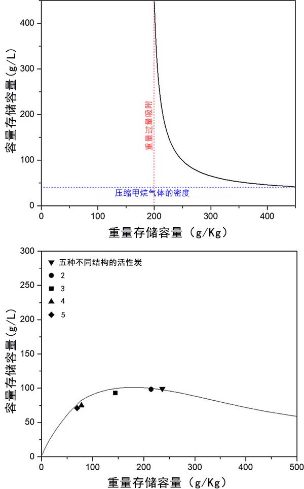 圖3:活性炭的重量和體積儲存容量之間的關(guān)系。