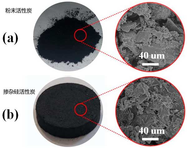 制備活性炭載硅復合材料的步驟如下:將粘合劑和粉末狀活性炭充分混合以增加接觸面積。在該階段期間還將溶解的硅酸鹽添加到混合物中。通過手動液壓在15MPa的壓力下進行樣品的壓縮模塑。進行熱處理以固化粘合劑,這促進了模塑并增加了強度。它在管式爐中進行。將樣品加熱直至溫度在氮氣中達到200℃達60分鐘。在通過真空干燥除去雜質后,我們獲得了柱狀模塑復合吸附劑。當然要成為合格的產(chǎn)品還需要優(yōu)化過程,比例添加材料等。