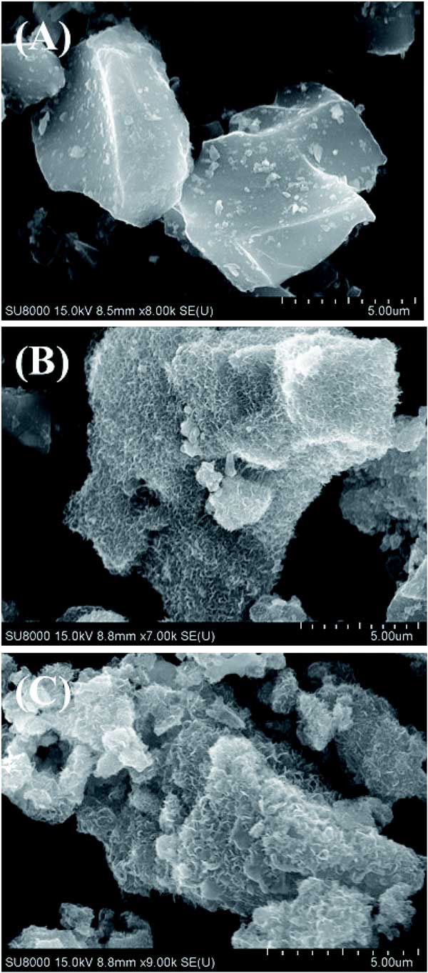 圖1:是鐵離子吸附過程后幾種活性炭的SEM圖像。