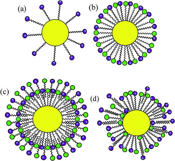 所提出的圖2c中的吸附模式描述了活性炭位點(diǎn)與吐溫80和HDTMA的混合溶液在接近臨界膠束濃度下的相互作用。在圖2c中,陽(yáng)離子和非離子表面活性劑的疏水鏈與活性炭相互作用疏水相互作用,以及吸附狀態(tài)下表面活性劑之間的鏈-鏈側(cè)向相互作用。在高濃度下,表面變得飽和,因此發(fā)生了粘膠形成的發(fā)生。過量的陽(yáng)離子表面活性劑在吸附狀態(tài)下開始滲透單層表面活性劑。事實(shí)上,活性炭具有吸附非極性和極性化合物的雙重性質(zhì),因此吸附機(jī)制導(dǎo)致表面上表面活性劑的取向不同。疏水尾部和親水頭部都可以通過疏水相互作用(顯性)或分散力與活性炭相互作用。在圖2d中根據(jù)它們相互作用的活性炭位點(diǎn),HDTMA和吐溫80分子可以采取不同的取向。第二層的形成可能源于具有相反取向的表面活性劑之間的疏水相互作用,或者滲透到單層中以形成混合構(gòu)象。
