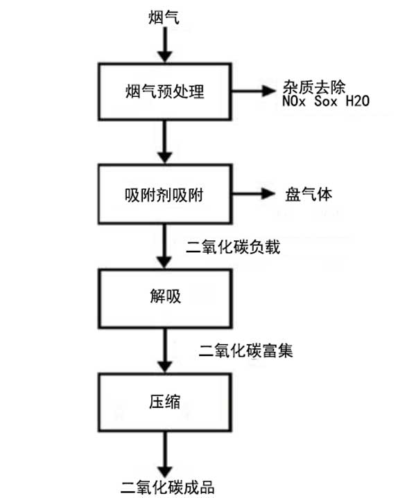 二氧化碳的吸附技術(shù)的簡(jiǎn)化圖在圖二顯示。首先將煙氣中的水分,硫和氮氧化物凈化。然后,所制備的氣體進(jìn)入使用固態(tài)吸附劑的吸附階段,例如活性炭,沸石,金屬有機(jī)骨架,多孔聚合物,基于堿金屬和胺的碳酸鹽的固體材料,碳球等。之后,吸附劑進(jìn)入解吸階段,在此階段釋放出富含CO2的氣體混合物,然后在壓力下將其壓縮。該技術(shù)的優(yōu)點(diǎn)是二氧化碳萃取效率高,再生成本低以及吸附劑操作的穩(wěn)定性;钚蕴繉(duì)CO2和N2的吸附能力很高,具有不同于沸石的大比表面積,并且還可以在潮濕條件下工作。而且,活性炭比沸石具有更低的吸附熱,因此它們可以更容易地再生。因此,在25°C和1bar的溫度下,活性炭的吸附熱為3kJ,而沸石為30kJ。收集二氧化碳的吸附劑質(zhì)量的重要指標(biāo)之一是二氧化碳的吸附量;旧,在靜態(tài)條件下和動(dòng)態(tài)條件下都進(jìn)行吸附容量的研究。