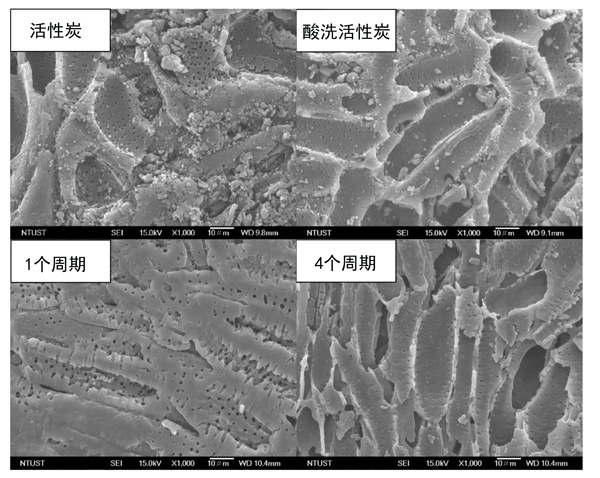 通過酸洗的活性炭和活性炭在顯示圖2中,SEM成像還透露,酸洗除去的雜質,從而產(chǎn)生的孔結構具有一個看似光滑的表面。與原始活性炭相比,酸洗活性炭的比表面積和總孔體積略大。這可能是在酸洗過程中去除了其他化學物質(例如氧氣)的影響。然而,酸洗似乎對活性炭的孔徑幾乎沒有影響。原始活性炭和新鮮活性炭的平均孔徑表明,絕大多數(shù)孔都屬于微孔范圍。