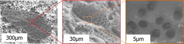 為實驗準備了兩種類型的樣品,無裂縫標本和帶裂縫的標本。樣品的尺寸為20×20×4mm。使用丙烯酸板形成裂縫。使用椰殼制備的載銀活性炭(活性炭+0.1%AgCl),并使用氯化銀實現(xiàn)銀的浸漬。盡管粉末粒度具有寬的尺寸分布,但250-500μm的顆粒占約90%的顆粒。圖2顯示了活性炭表面結(jié)構(gòu)的掃描電子顯微鏡(SEM)圖像:發(fā)現(xiàn)其表面是多孔的,并且在大孔內(nèi)部觀察到幾個中孔。在實驗期間使用恒電位儀在兩種條件下測量樣品的開路電位:與活性炭接觸和不接觸活性炭。在實驗之后,使用光學(xué)顯微鏡觀察樣品表面。測量在開路條件下進行近40小時(在中性溶液中)和24小時(在堿性溶液中)。